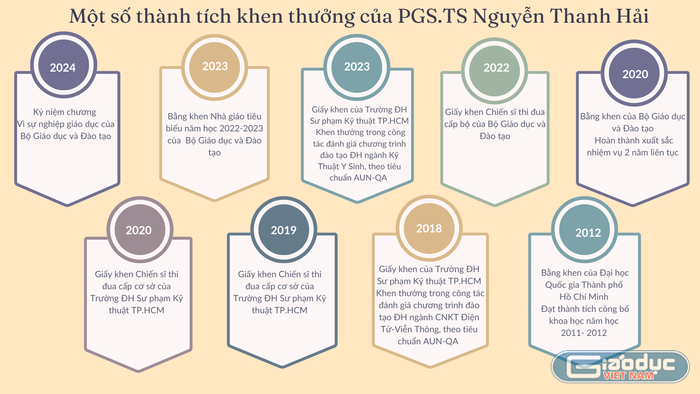 Một số thành tích Phó Giáo sư, Tiến sĩ Nguyễn Thanh Hải đã đạt được trong quá trình công tác. Thiết kế: Thanh Hà.