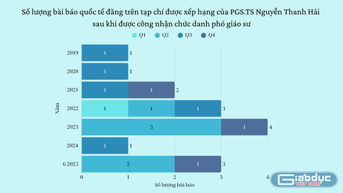 Số lượng bài báo quốc tế đăng trên tạp chí được xếp hạng của Phó Giáo sư, Tiến sĩ Nguyễn Thanh Hải sau khi đạt chức danh phó giáo sư. Biểu đồ: Thanh Hà.