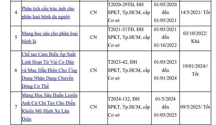4 đề tài nghiên cứu khoa học cấp cơ sở của Phó Giáo sư, Tiến sĩ Nguyễn Thanh Hải sau khi đạt chức danh phó giáo sư. Ảnh chụp màn hình.