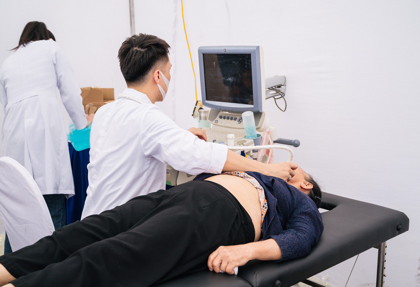Tại đây, người dân được đo huyết áp, đường huyết, cholesterol, BMI, siêu âm mạch cảnh, khám thần kinh cơ bản và tư vấn kiểm soát nguy cơ đột quỵ.