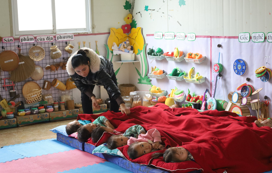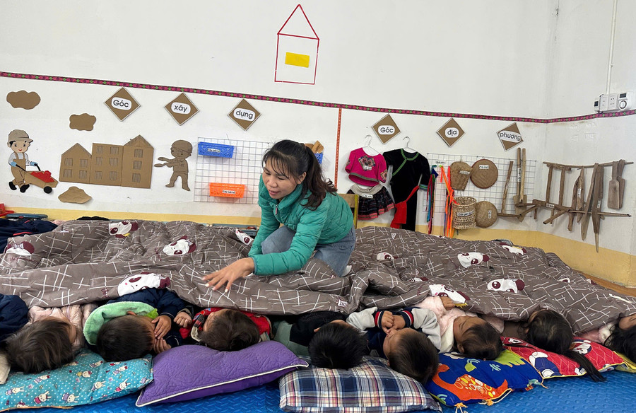 Cùng chung nỗ lực ấy, tại Trường Mầm non Bát Đại Sơn (xã Cán Tỷ), bà Lục Thị Hương - Hiệu trưởng, chia sẻ: “Dù thời tiết lạnh sâu, 361 trẻ của trường vẫn được bảo đảm an toàn. Các điểm trường có điện đã được đầu tư máy sưởi để giữ ấm cho trẻ trong giờ học và sinh hoạt. Riêng điểm trường lẻ Pải Chư Phìn chưa có điện, giáo viên chủ động tăng cường các biện pháp giữ ấm, cho trẻ ở trong lớp học, hạn chế di chuyển, bảo đảm sức khỏe cho các em”.