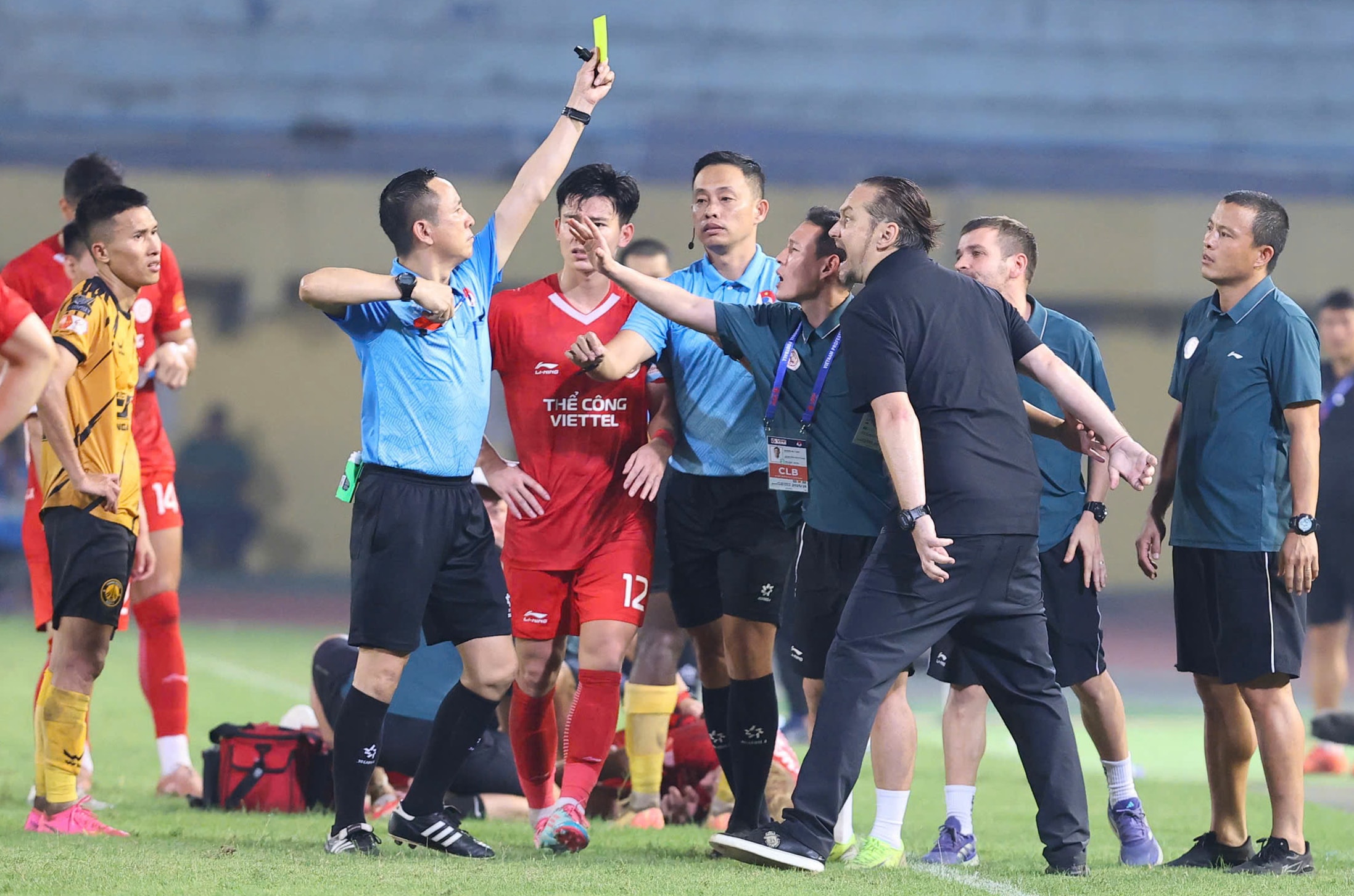 HLV Velizar Popov phản ứng gay gắt, thái quá với tổ trọng tài điều hành trận đấu giữa Thể Công Viettel và Thanh Hóa trên sân Hàng Đẫy. Ảnh: Ngọc Tú