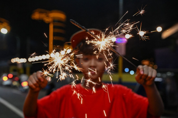 Em bé đốt pháo bông chào năm mới ở Manila, Philippines. Ảnh: GettyImages/CNN