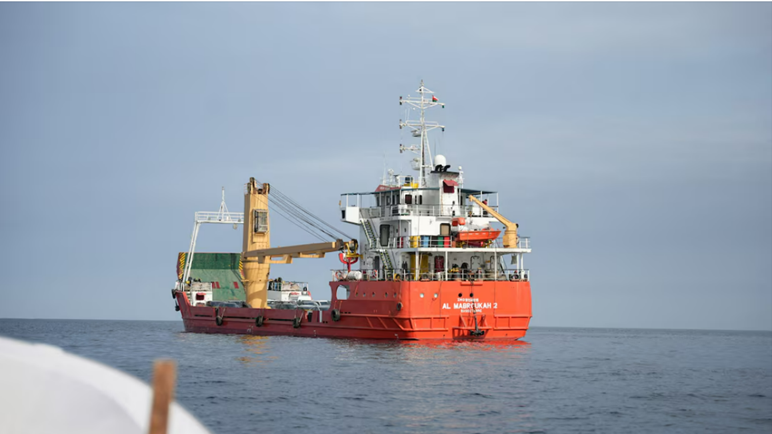 Một con tàu tại eo biển Hormuz, ngoài khơi tỉnh Musandam của Oman, ngày 12/4/2026. (Ảnh: Reuters)