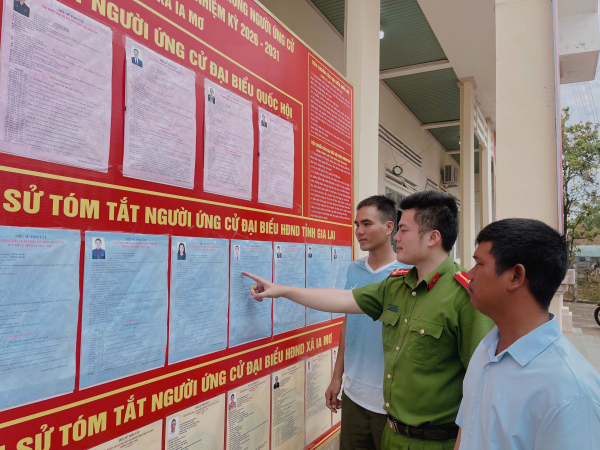 Trong khi nhiều đơn vị áp dụng các hình thức tuyên truyền hiện đại, tại các địa bàn biên giới, việc đưa thông tin về bầu cử đến từng người dân vẫn được thực hiện bằng những cách làm đơn giản và kiên trì. Thiếu tá Mai Quốc Hoàn, Trưởng Công an xã Ia Mơ (tỉnh Gia Lai), cho biết xã Ia Mơ có diện tích hơn 435 km² với khoảng 3.500 dân và 27,6 km đường biên giới giáp Campuchia. Đây là địa bàn rộng, dân cư phân bố thưa thớt với khoảng 80% dân số là đồng bào dân tộc thiểu số, chủ yếu là người Jrai, sinh sống rải rác tại các khu vực vùng sâu, vùng xa. Theo Thiếu tá Hoàn, điều kiện địa bàn rộng và trình độ dân trí không đồng đều khiến công tác tuyên truyền chủ trương, đường lối của Đảng, pháp luật của Nhà nước nói chung và vận động người dân tham gia bầu cử nói riêng gặp nhiều khó khăn.