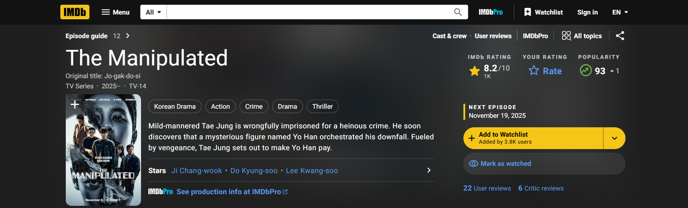 The Manipulated đạt 8,6/10 sao IMDb sau 6 tập phim.
