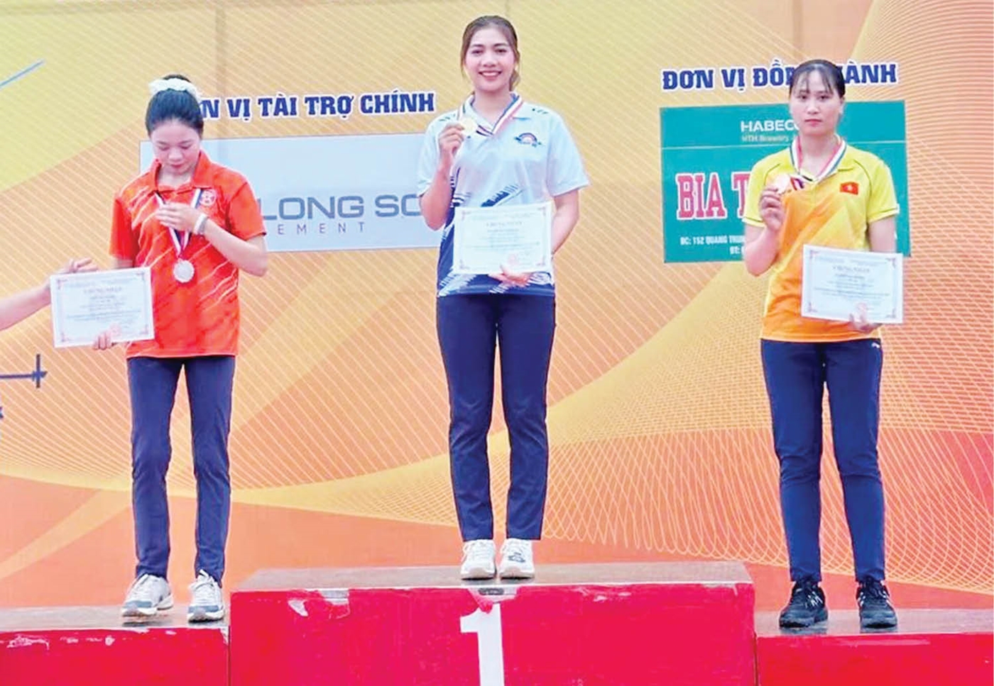 Thanh Nhi (giữa) xuất sắc “gánh team” tại Giải vô địch các đội mạnh bắn cung Quốc gia 2025. Ảnh: Đắc Quang