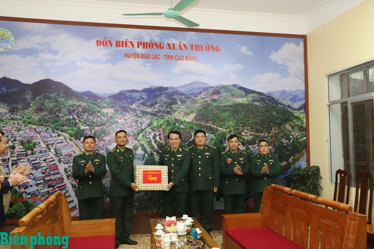 Trung tướng Vũ Trung Kiên tặng quà cán bộ, chiến sĩ Đồn Biên phòng Xuân Trường, Ban Chỉ huy Bộ đội Biên phòng tỉnh Cao Bằng. Ảnh: Trần Đức