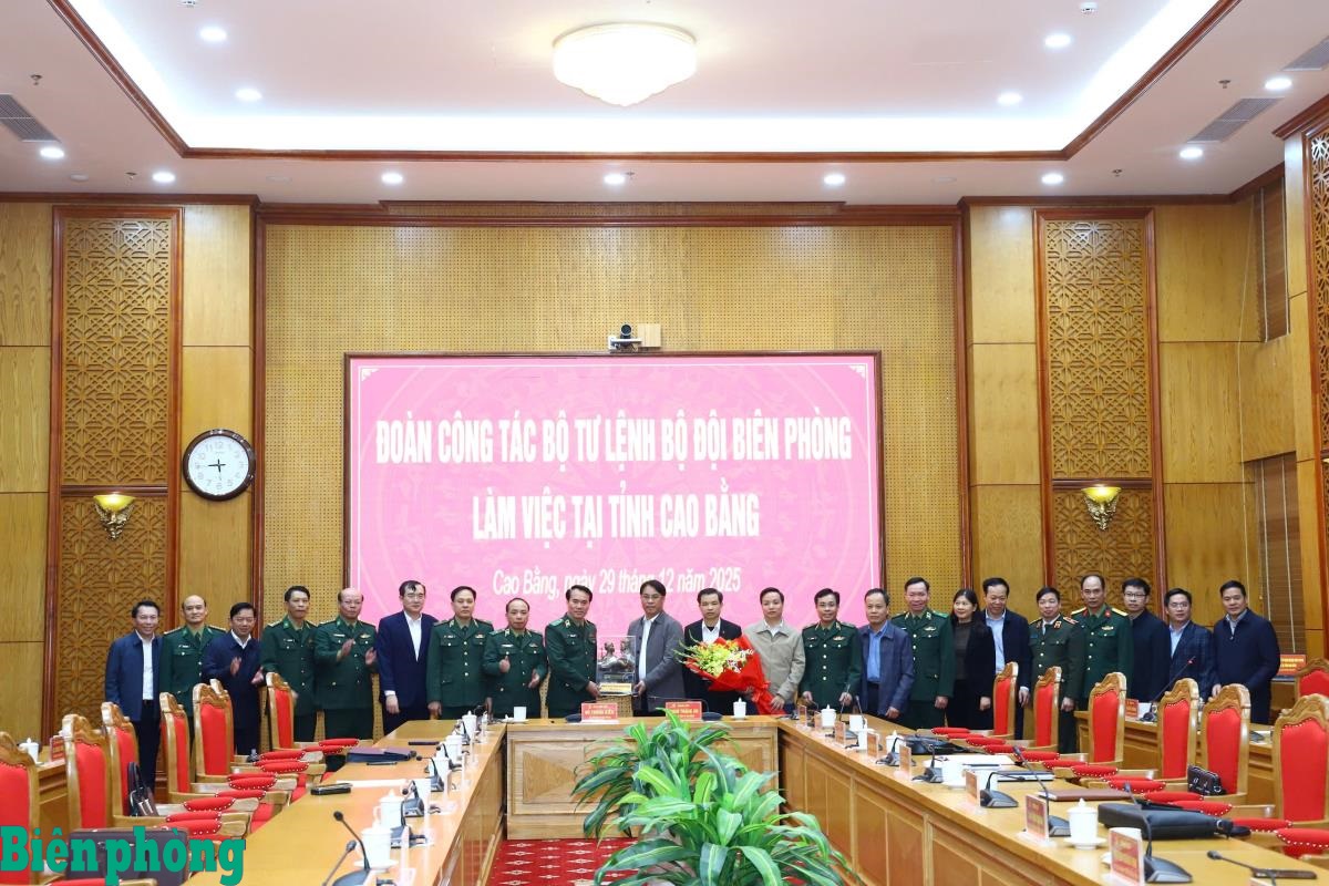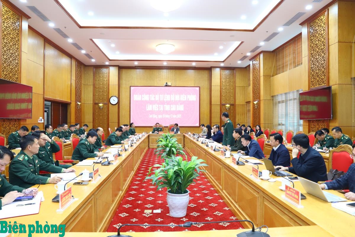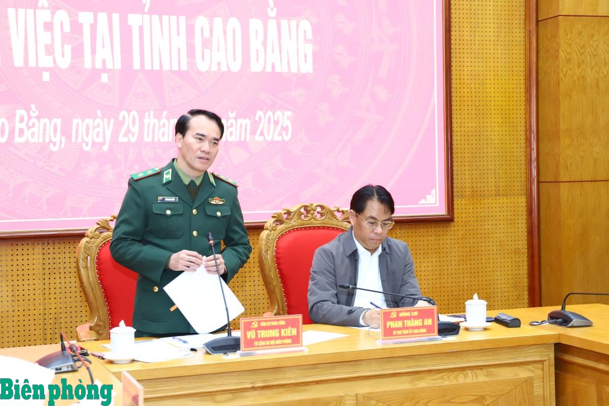 Cùng dự buổi làm việc có các đồng chí: Thiếu tướng Vũ Quốc Ân, Ủy viên Ban Thường vụ Đảng ủy, Phó Chính ủy Bộ đội Biên phòng; Thủ trưởng Bộ Tham mưu, các Cục; đại diện cơ quan chức năng Bộ Tư lệnh Bộ đội Biên phòng và các đồng chí Ủy viên Ban Thường vụ Tỉnh ủy Cao Bằng