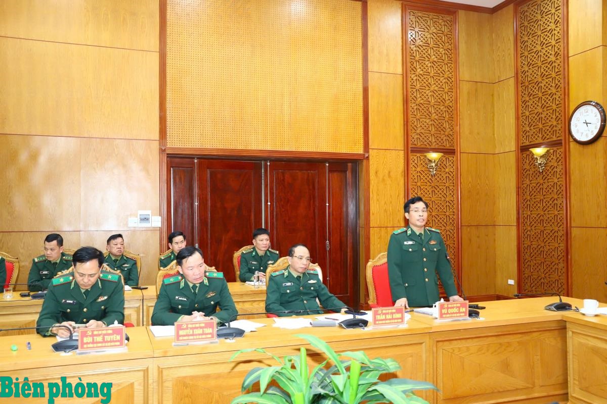 Thiếu tướng Vũ Quốc Ân, Ủy viên Ban Thường vụ Đảng ủy, Phó Chính ủy Bộ đội Biên phòng phát biểu tại buổi làm việc. Ảnh: Trần Đức