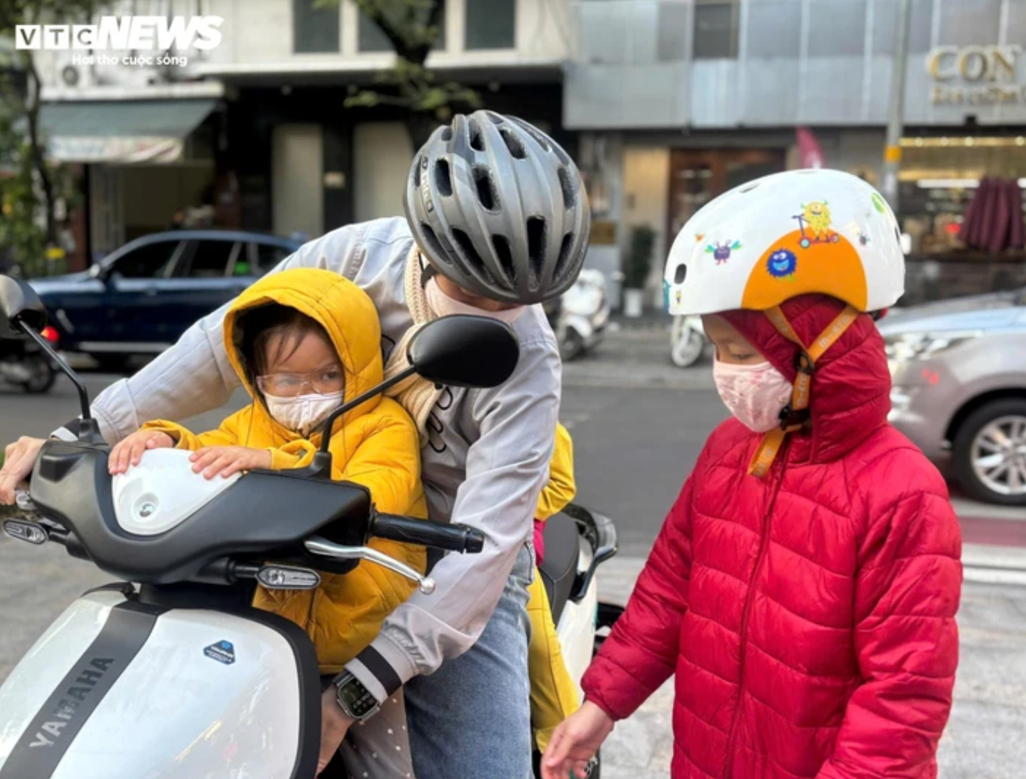 Người dân TP.HCM mặc áo khoác ra đường vào sáng sớm khi nhiệt độ giảm do ảnh hưởng không khí lạnh.