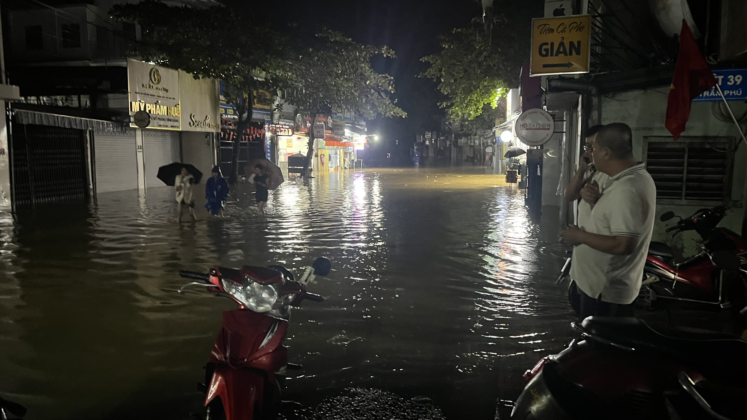 Nước lụt lại bủa vây TP Huế vào tối 29-10.
