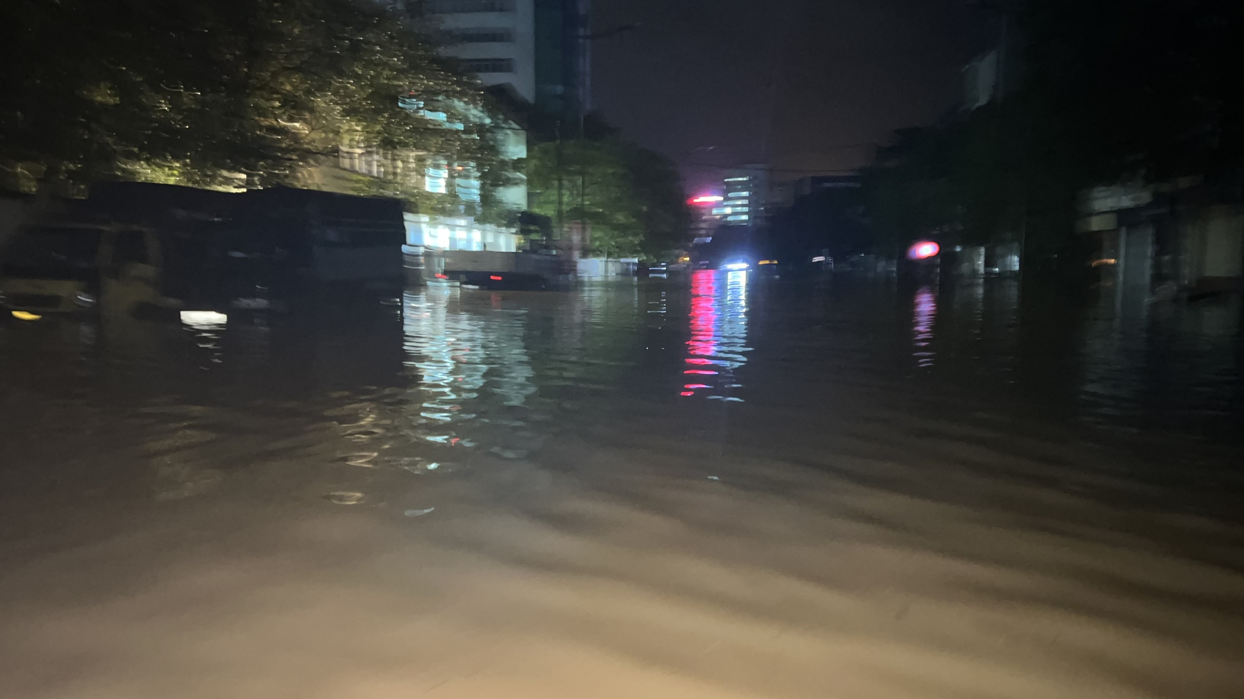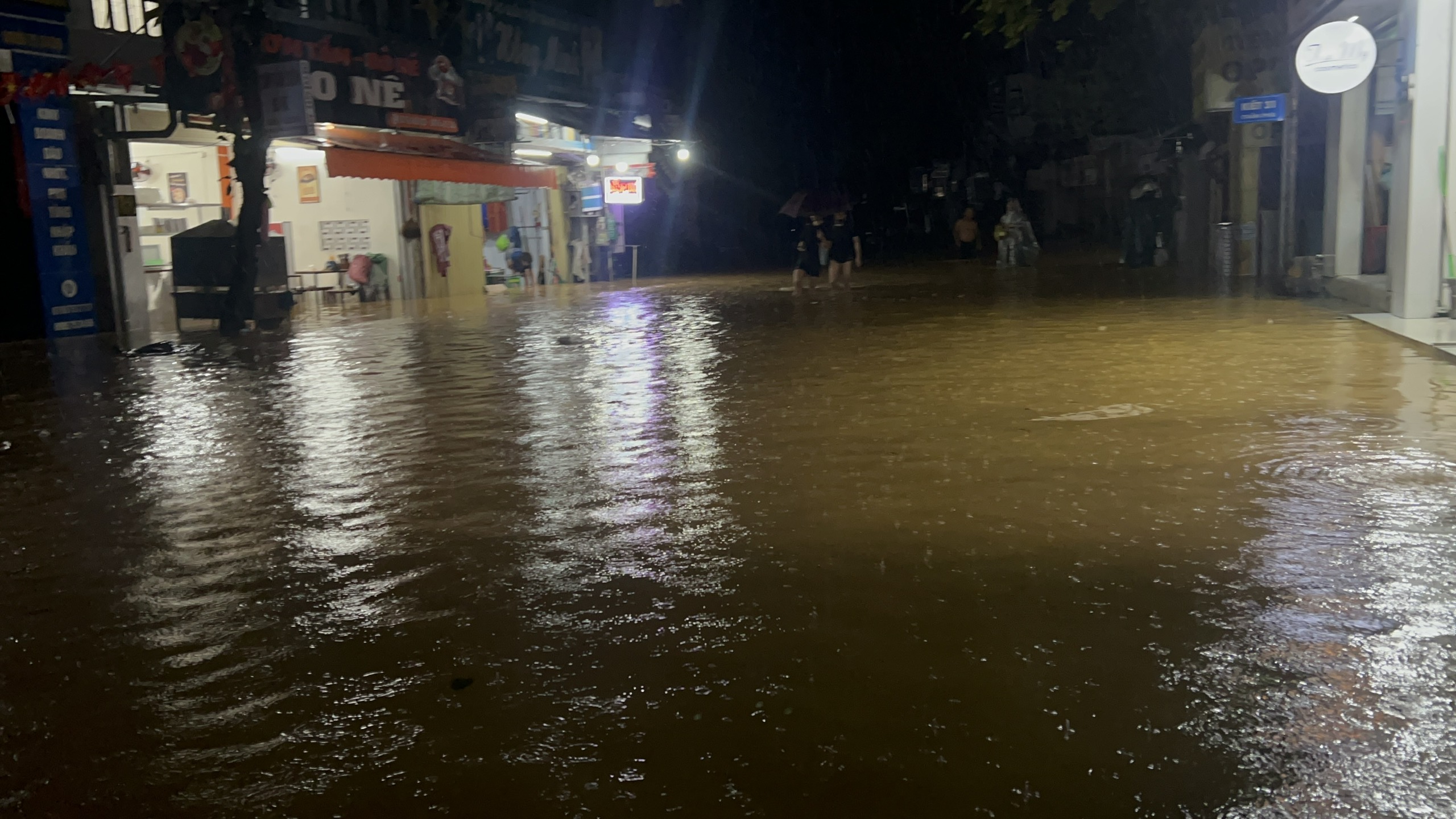 Lúc 20 giờ, lũ sông Hương tại Kim Long đạt 4,93 m, cách đỉnh lũ 2 ngày trước chỉ hơn 0,12 m. Nhiều tuyến đường ở trung tâm TP Huế lúc sáng nay nước rút sạch thì hiện đã ngập sâu.