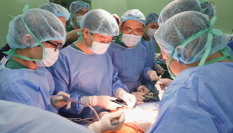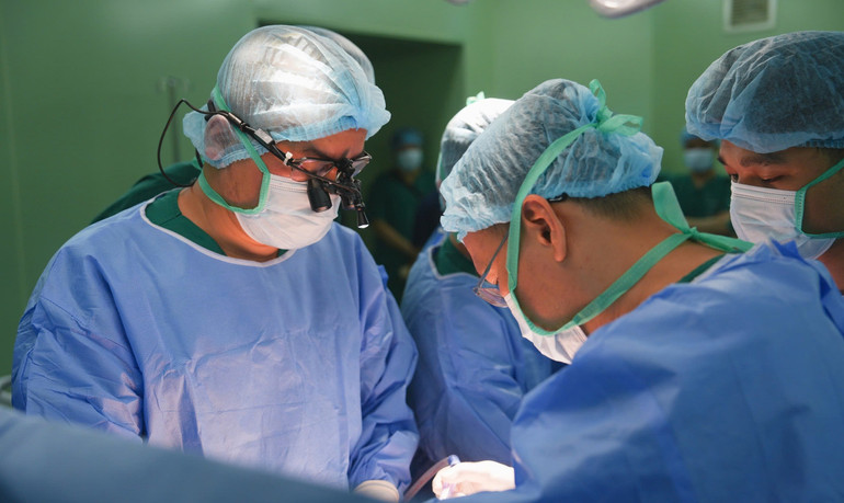 Các bác sĩ phối hợp nhịp nhàng ghép tạng cho người bệnh.
