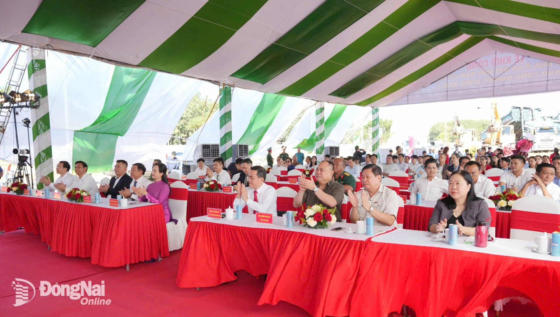 Các đại biểu dự lễ khởi công Dự án Nhà ở xã hội khu dân cư liền kề Khu công nghiệp Đồng Xoài I. Ảnh: Xuân Túc