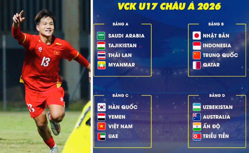 Tại vòng chung kết U17 châu Á 2026, Việt Nam nằm bảng C và sẽ lần lượt gặp Yemen (á quân 2002) ngày 6-5, Hàn Quốc (vô địch 1986, 2002) ngày 10-5, UAE (á quân 1990) ngày 13-5.