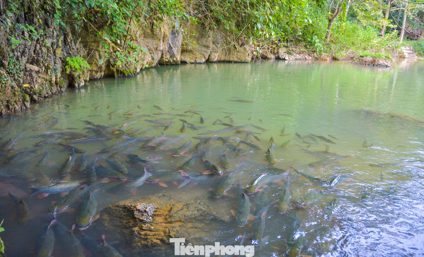 “Cá ra ngoài hang nặng khoảng 3-7kg, có nhiều con cá lớn vẫn ẩn thân đâu đó trong lòng núi, chưa bao giờ xuất hiện”, người dân bản Chiềng Ban (xã Văn Nho) chia sẻ.