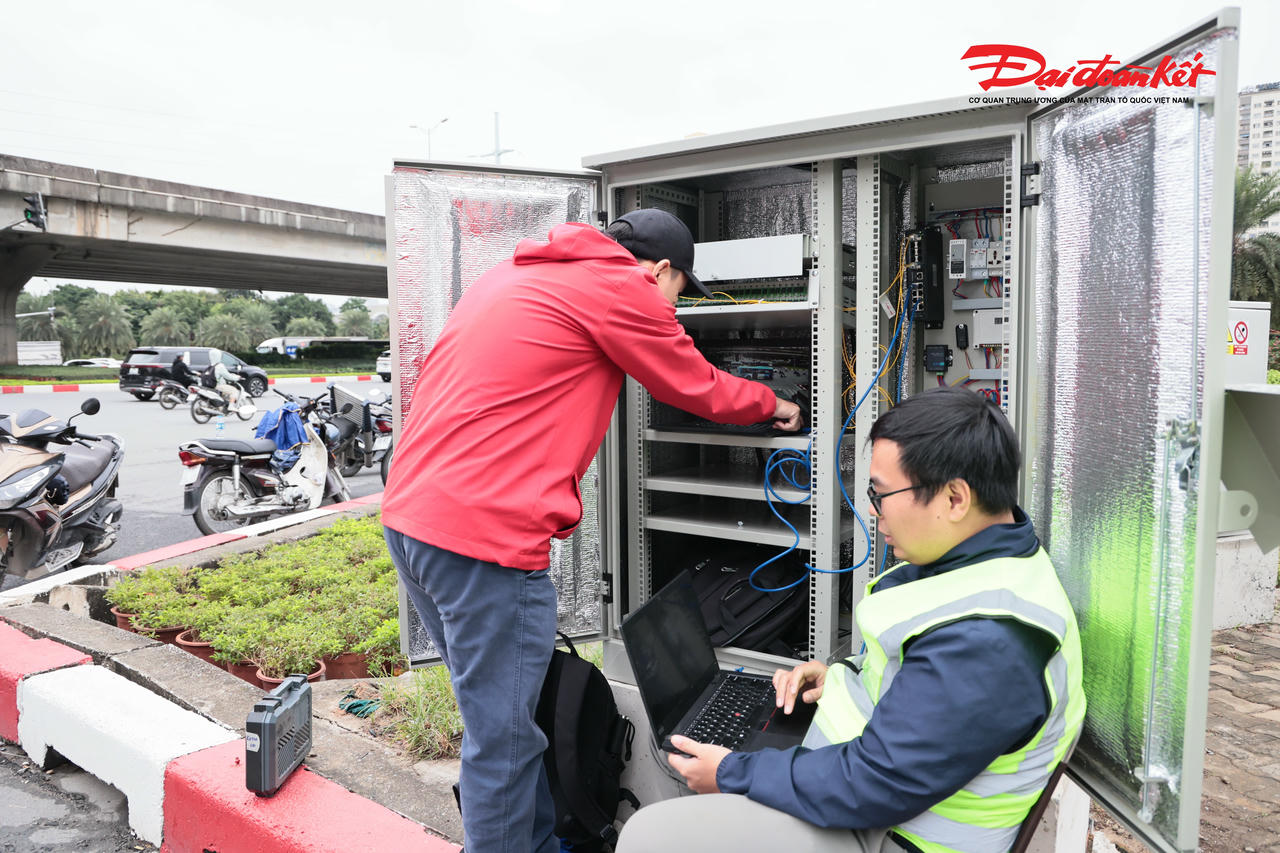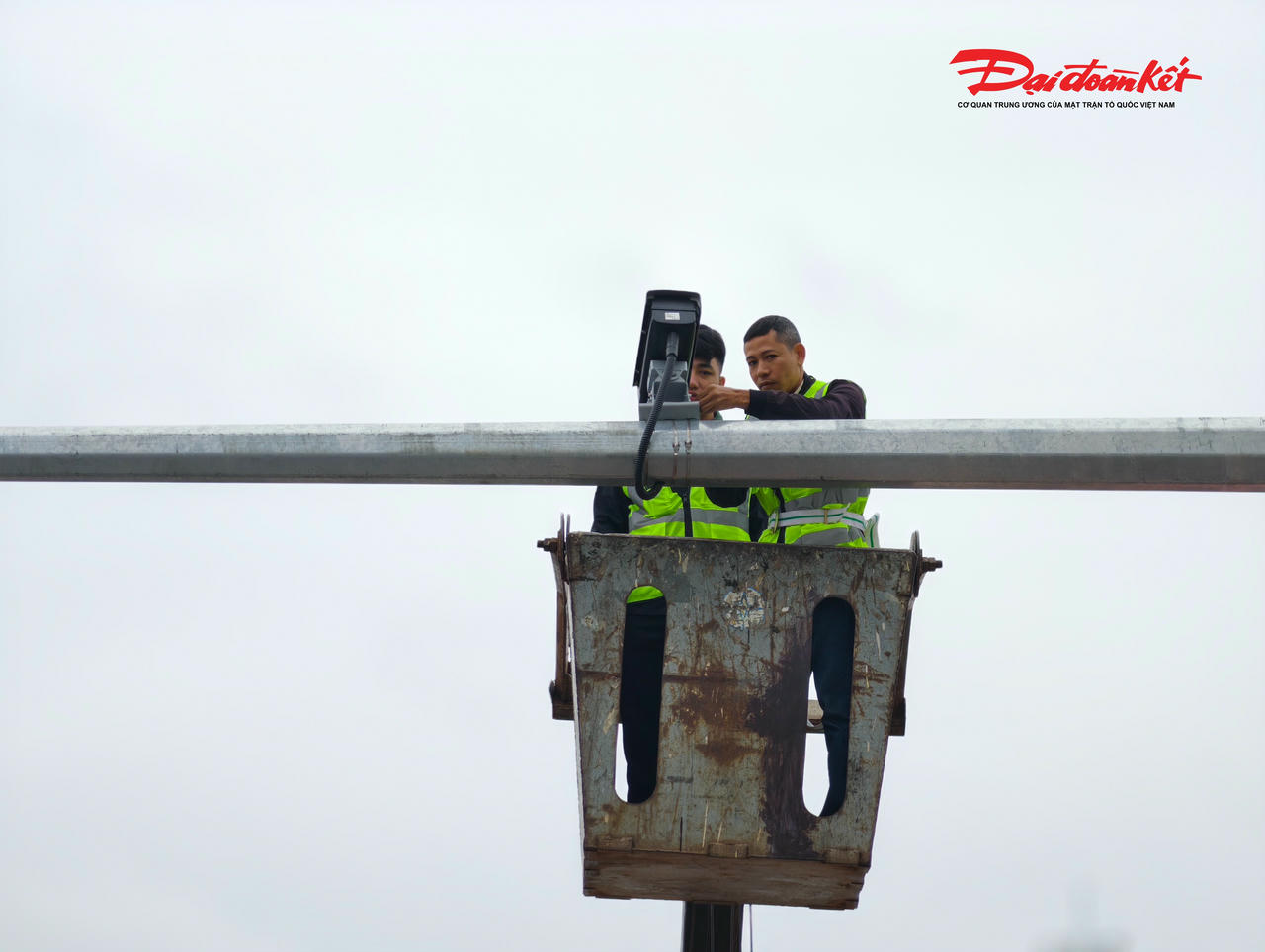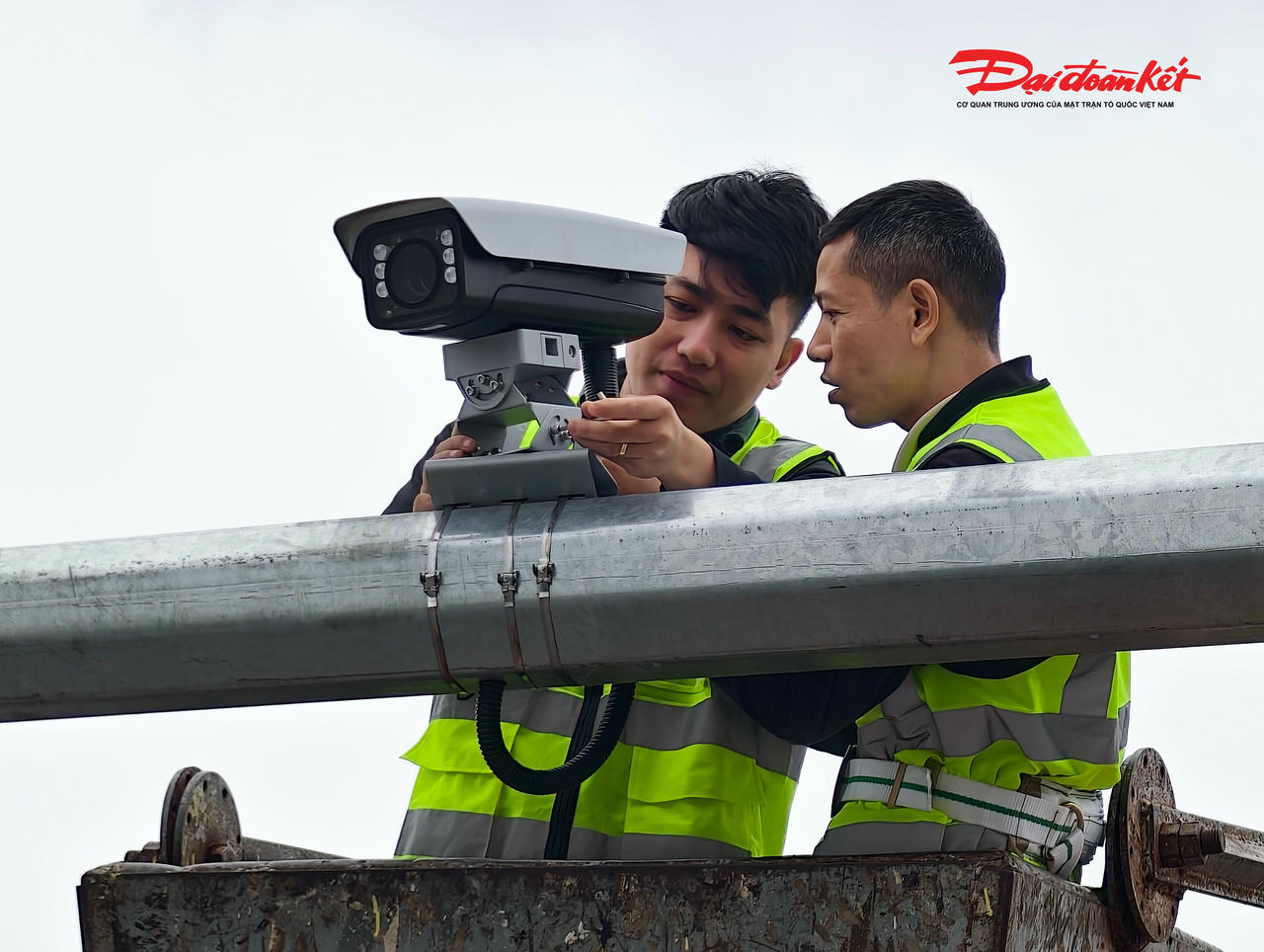 Trước khi lắp đặt camera AI, lực lượng chức năng kiểm tra đường truyền, dây dẫn để điều chỉnh góc máy cho phù hợp với từng tuyến đường, nút giao.