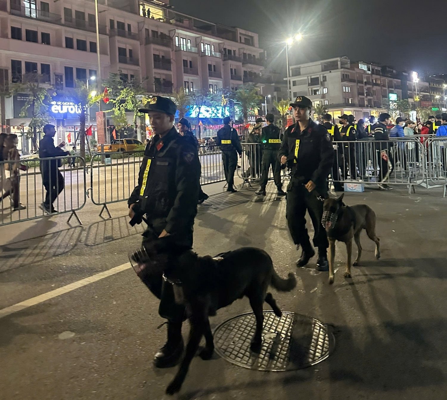 Tổ cảnh khuyển Phòng Cảnh sát cơ động tuần tra, rà soát an ninh tại khu vực tổ chức chương trình nghệ thuật đêm Giao thừa Xuân Bính Ngọ.