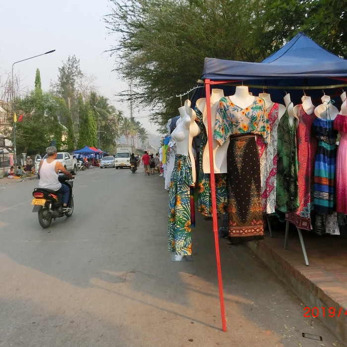 Ở Lào cũng có những sạp quần áo, hàng hóa ngoài trời.