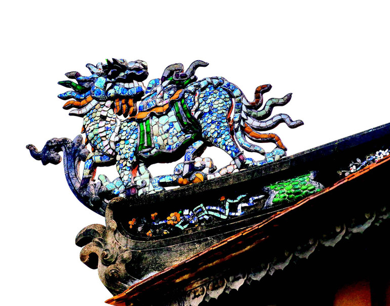 Hình tượng long mã trên đầu mái lầu Tứ Phương Vô Sự (Đại Nội Huế).