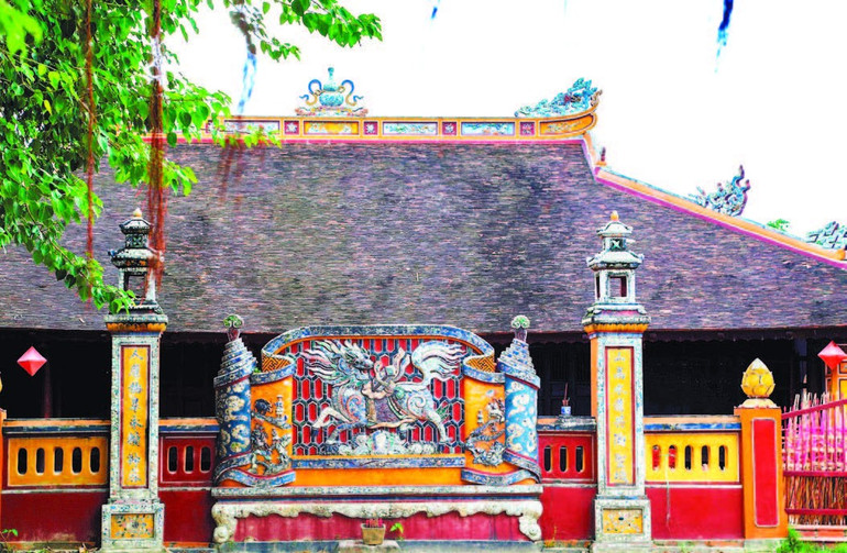 Bình phong tại đình làng Kim Long vẫn trường tồn qua thời gian.