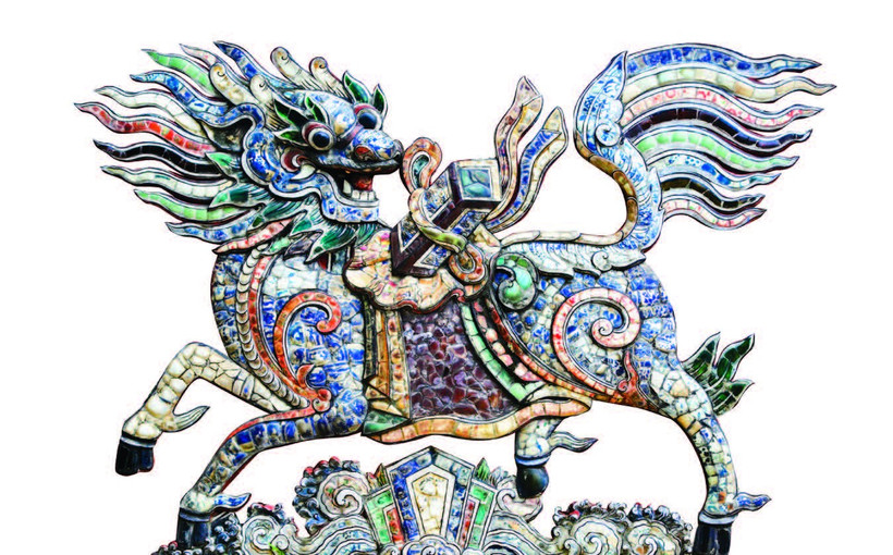 Từ lâu, người thợ Huế đã biết sử dụng kỹ thuật khảm sành sứ để tạo hình long mã trên các bức bình phong. Qua bàn tay khéo léo của các phường thợ dân gian, những mảnh sành, mảnh sứ được sắp đặt hài hòa, tạo nên linh vật vừa mạnh mẽ, uy nghi, vừa thanh thoát, sinh động. Những đường khảm uốn lượn càng làm nổi bật thần thái long mã, gửi gắm ý nghĩa cát tường, trí tuệ và thịnh vượng.