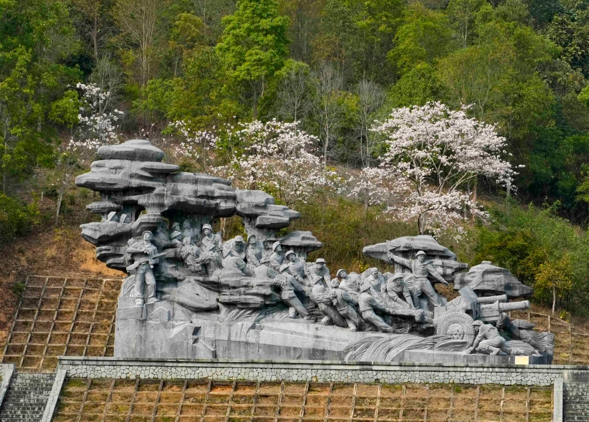 Hoa ban nở trên di tích Tượng đài kéo pháo. Ảnh: Tư liệu