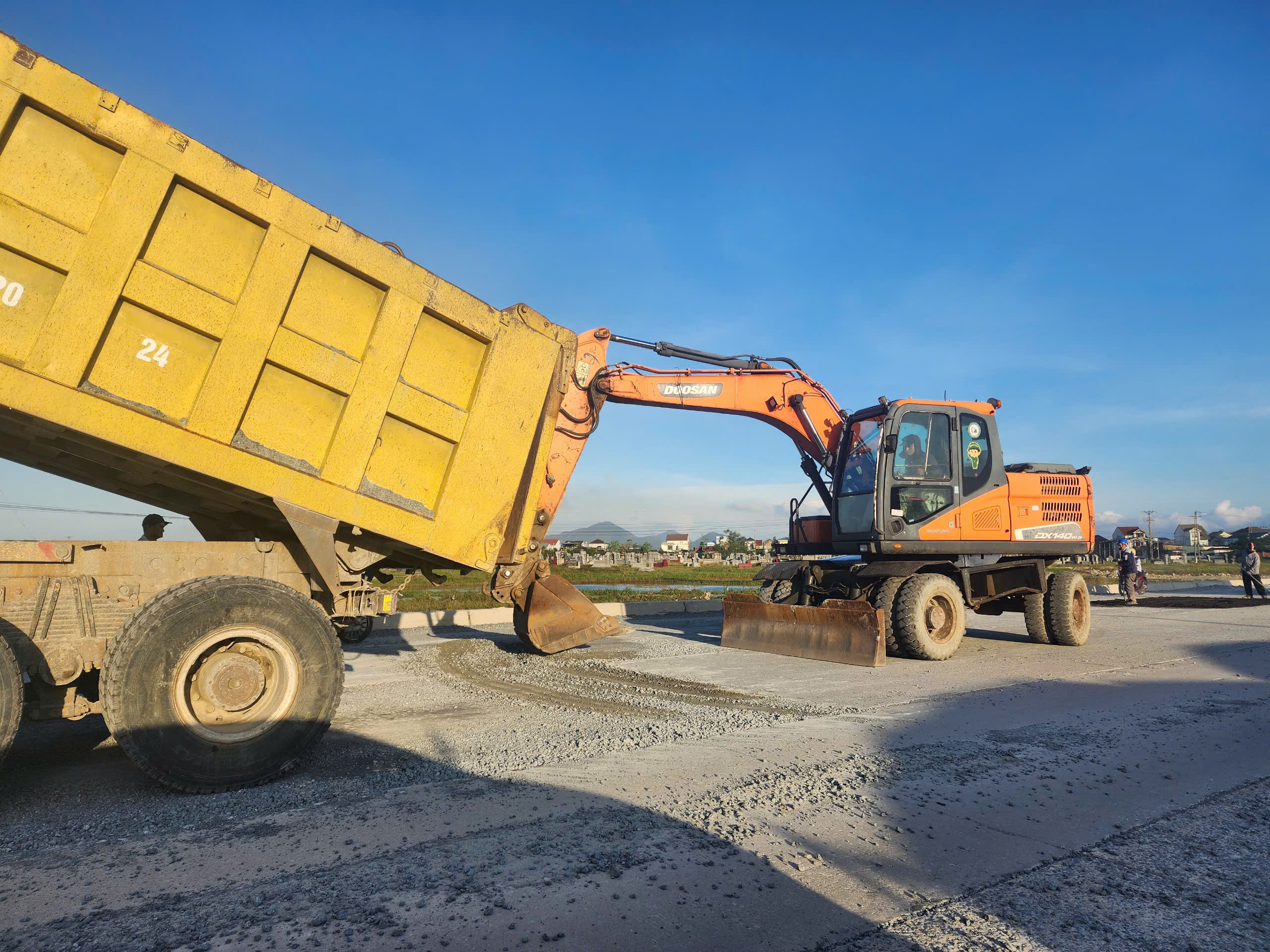 Trong thời gian mưa, nhà thầu chỉ có thể san gạt tạm để đảm bảo giao thông. Những ngày nắng trở lại, đơn vị đã khẩn trương sửa chữa ổ gà và tiếp tục các hạng mục còn lại.