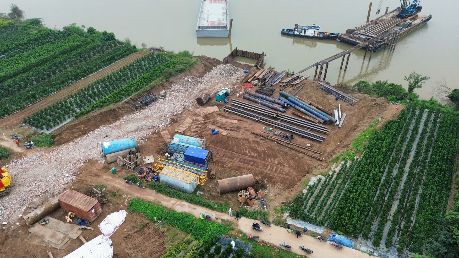 Công trường xây dựng cầu Mễ Sở (thuộc dự án đường Vành đai 4) trên địa phận xã Mễ Sở, Hưng Yên. Ảnh: Sóng Hữu