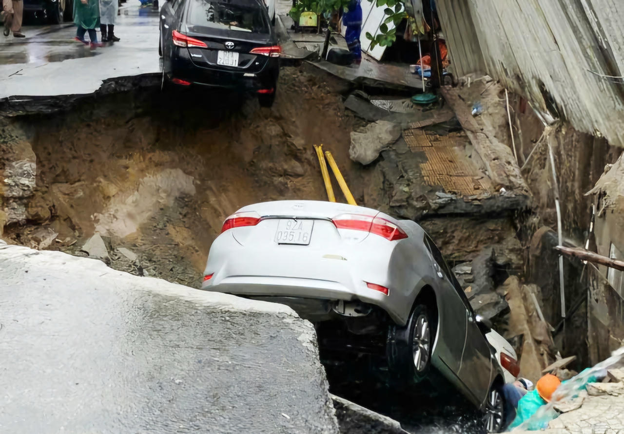 Khu vực bị sụt đã được khoanh vùng nguy hiểm, triển khai biện pháp xử lý tạm thời nhằm bảo đảm an toàn cho người dân.