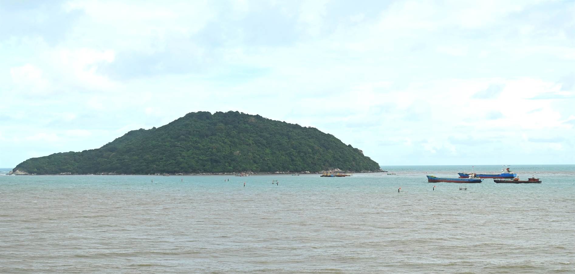 Tại cụm đảo Hòn Khoai, những đoạn kè chắn sóng được hình thành chuẩn bị cho việc thi công Cảng lưỡng dụng Hòn Khoai.
