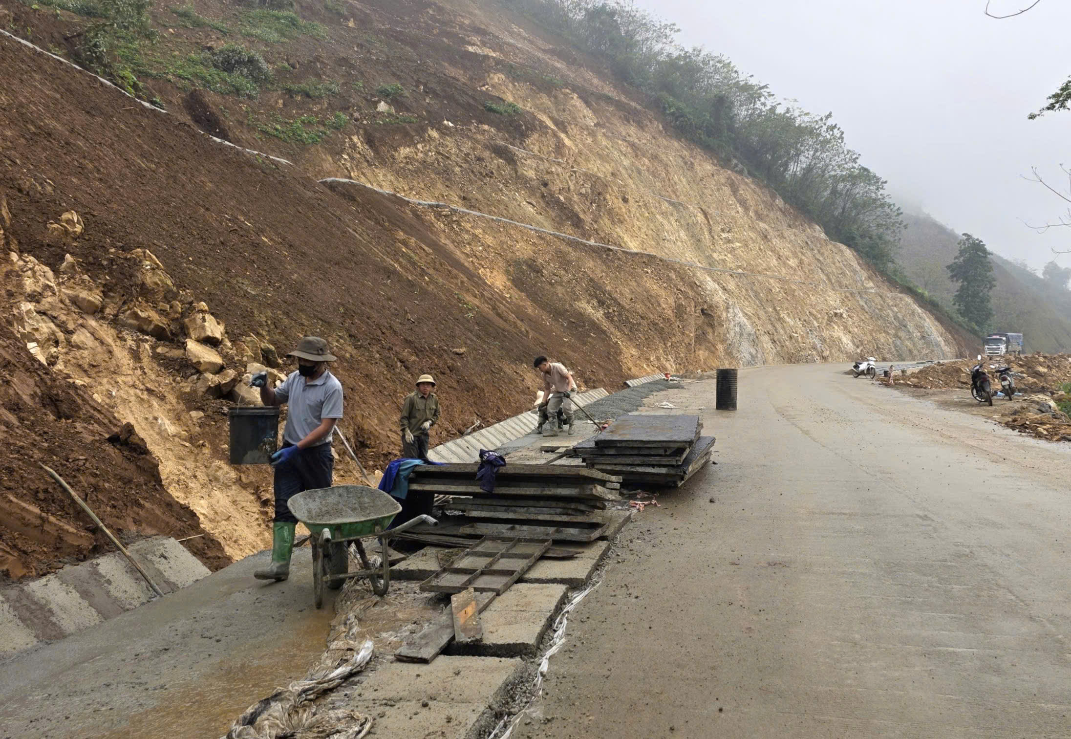 Anh Nguyễn Duy Bình, cán bộ kỹ thuật Công ty Cổ phần Đầu tư và Xây dựng giao thông Phương Thành cho biết, địa hình đồi núi phức tạp, nền đất yếu và thời tiết thất thường là những thách thức lớn.