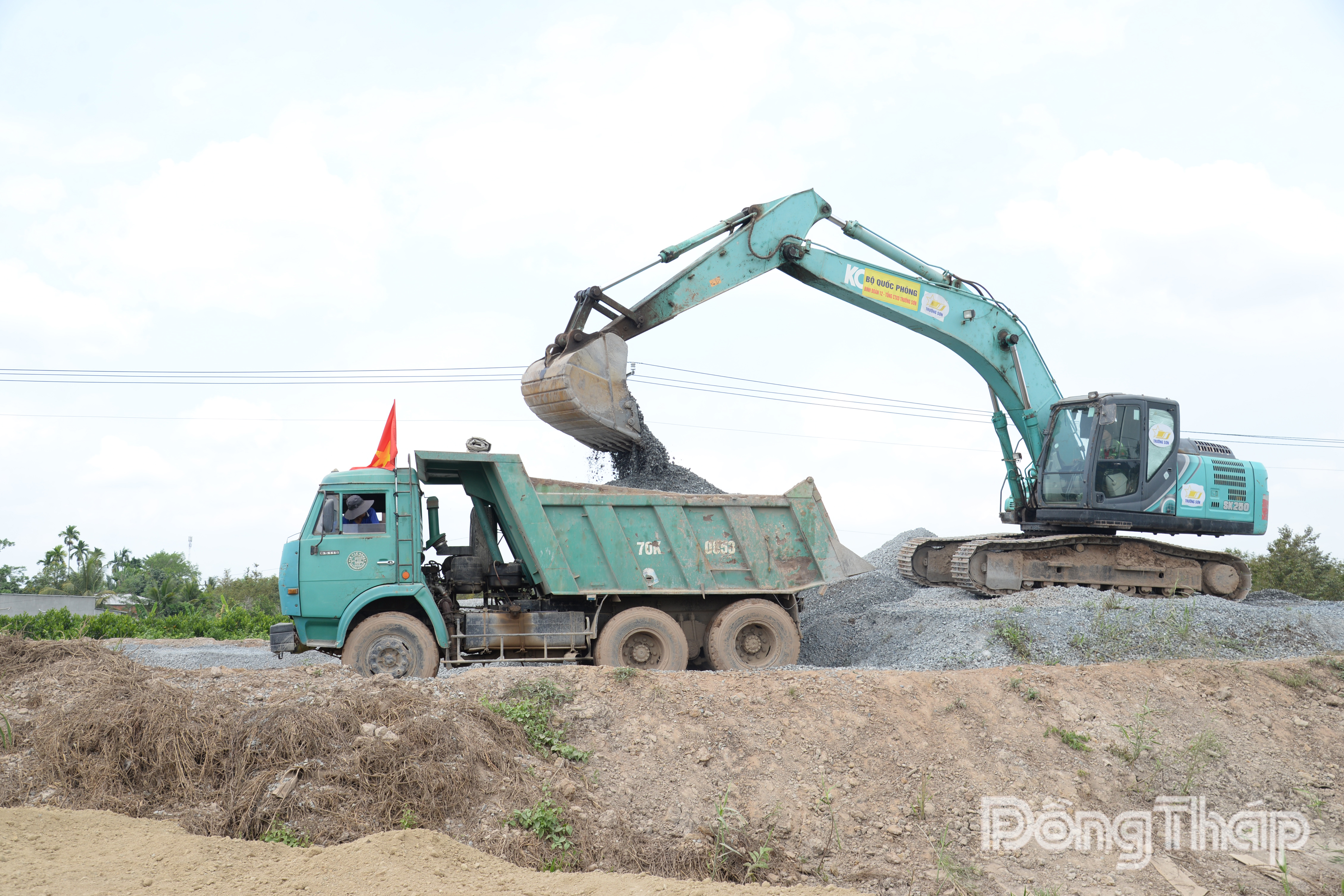 Tổng Công ty Xây dựng Trường Sơn tiến hành thi công lớp cấp phối đá dăm đối với những đoạn đã dỡ tải.
