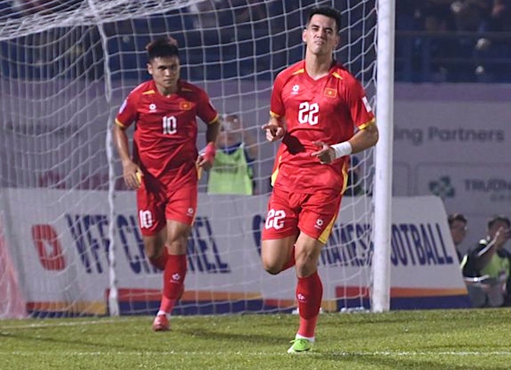 Sau nhiều nỗ lực, cuối cùng đội tuyển Việt Nam cũng có bàn thắng vượt lên dẫn trước.
