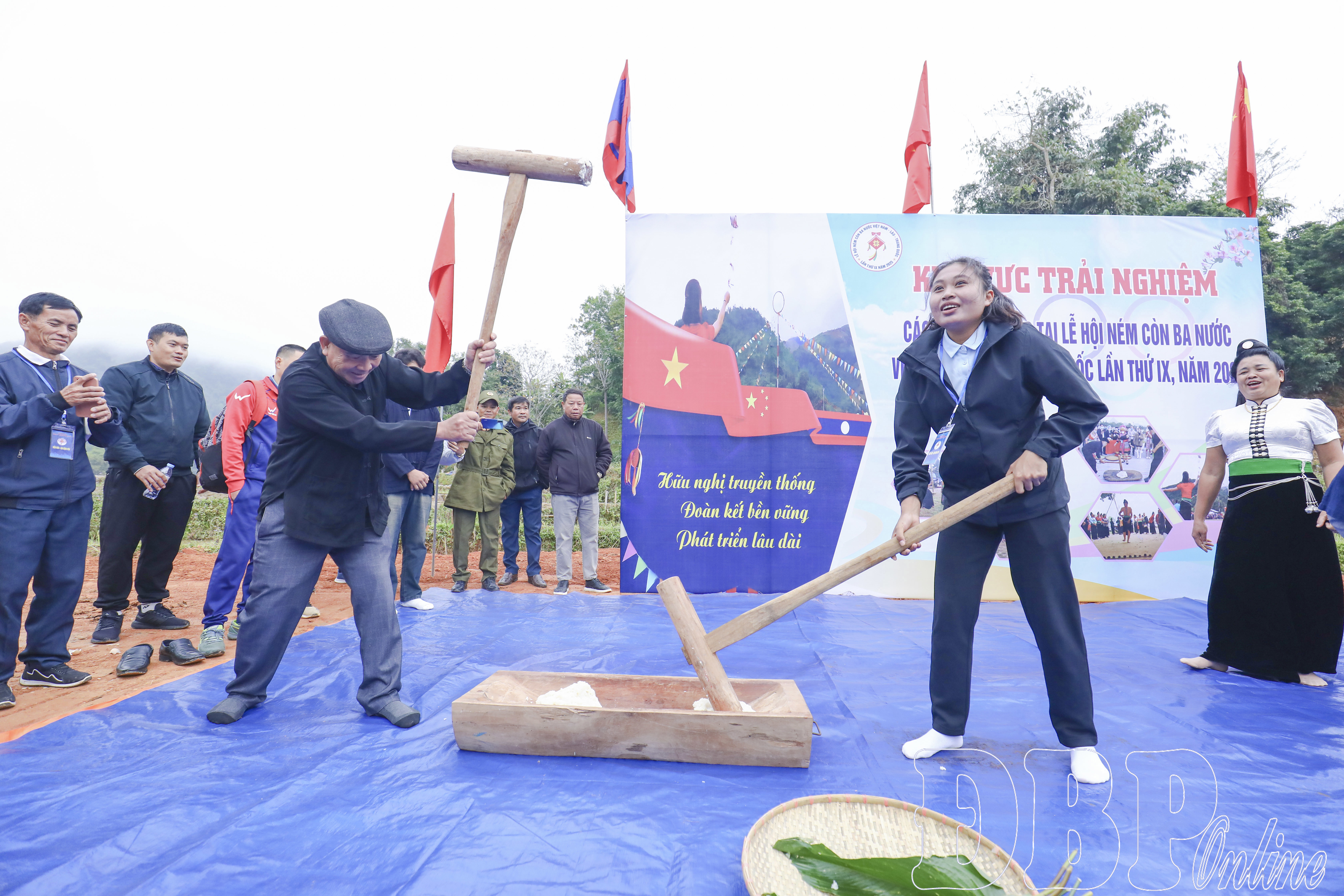 Trong khuôn khổ ngày hội, các đoàn VĐV đã giao lưu, trải nghiệm hoạt động giã bánh giầy truyền thống của đồng bào dân tộc Mông.