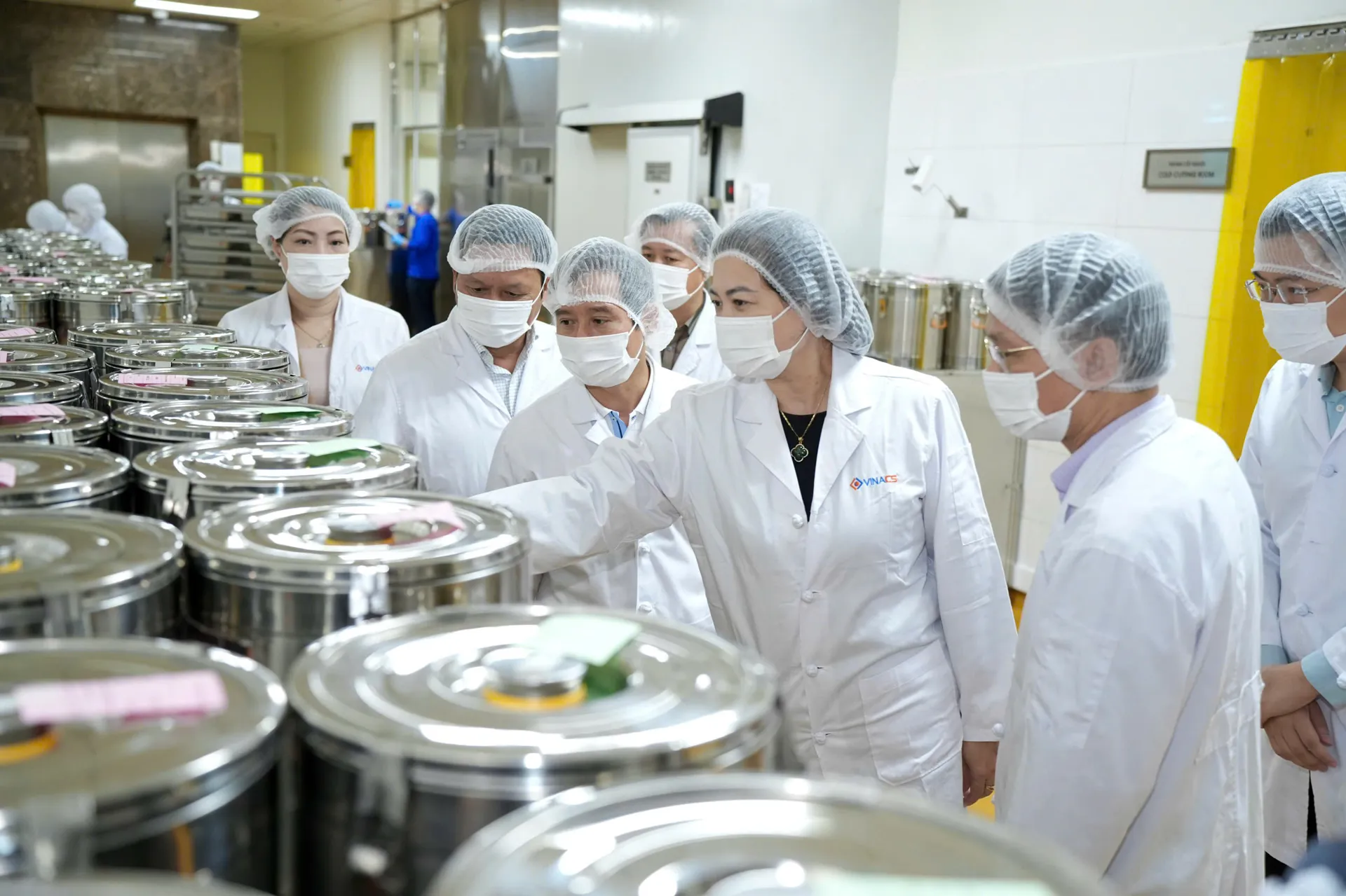 Đoàn kiểm tra liên ngành của TP về công tác tổ chức bữa ăn bán trú cho học sinh kiểm tra quy trình chế biến suất ăn tại Công ty Cổ phần dịch vụ suất ăn Hàng Không (VINACS).