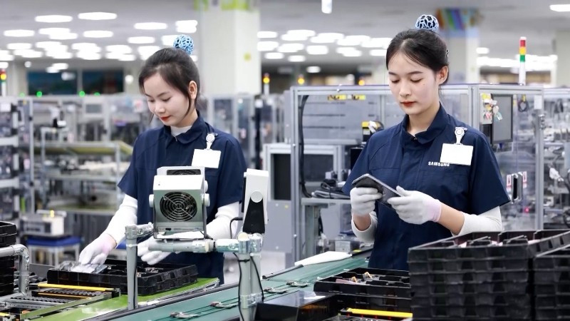 Hoạt động sản xuất tại Công ty Trách nhiệm hữu hạn Samsung Electronics Việt Nam Thái Nguyên. (Ảnh: VĂN LINH).