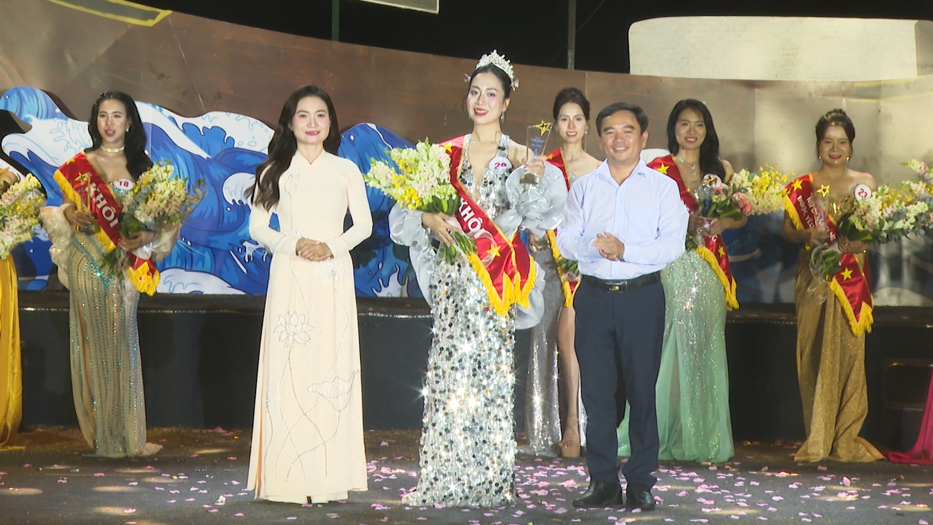 Thí sinh Ngô Thị Tâm (thứ 3 từ trái sang) giành danh hiệu Hoa khôi Duyên dáng Nữ doanh nhân Đà Nẵng 2026