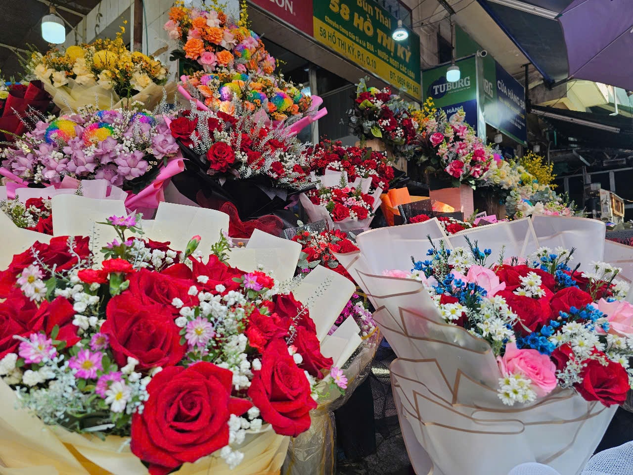 Những ngày cận Ngày Quốc tế Phụ nữ, thị trường 8/3 ghi nhận các cửa hàng hoa tươi liên tục cập nhật mẫu mã mới và treo biển nhận đặt hoa.