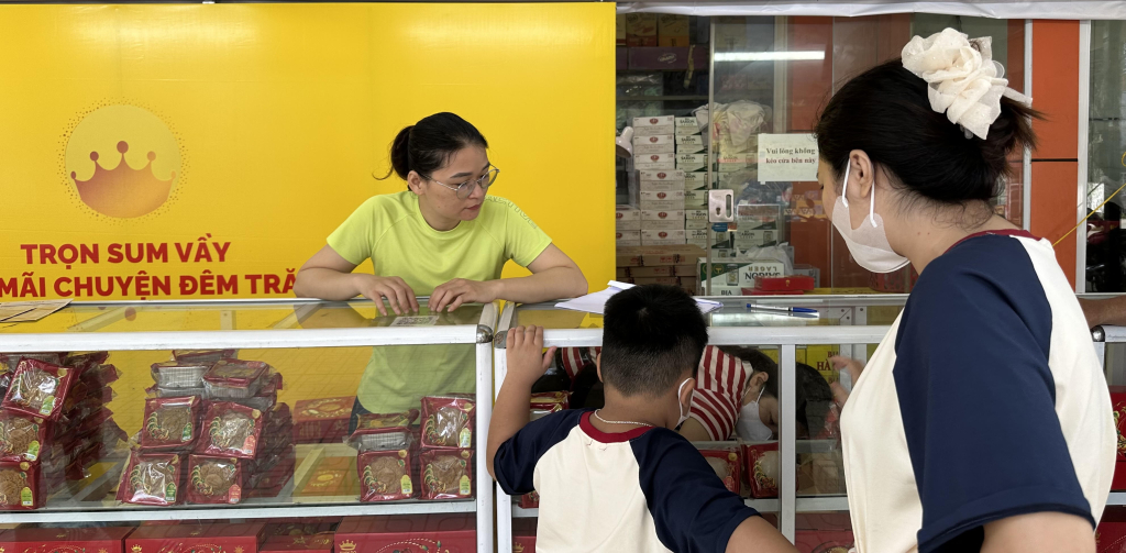 Khách mua bánh tại cơ sở sản bánh trung thu Hương Lan "Ông Hội".