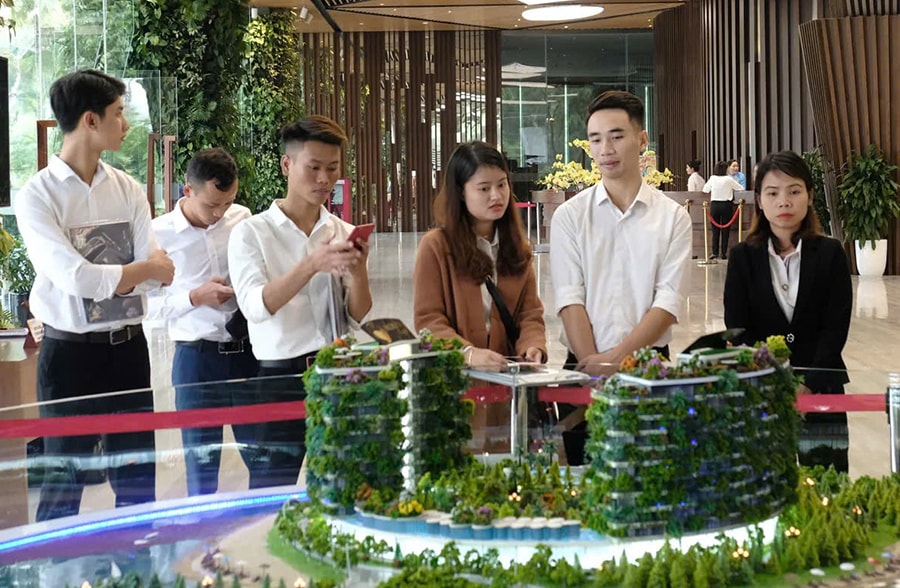 Nhà đầu tư tìm hiểu một dự án bất động sản tại thành phố Hà Nội. Ảnh: Đỗ Tâm