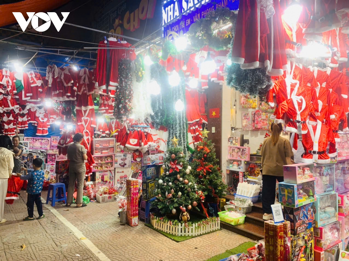 Theo ghi nhận của phóng viên Báo Điện tử Tiếng nói Việt Nam (VOV), tại các cửa hàng kinh doanh đồ lưu niệm, quà tặng đồ trang trí Noel được bày bán với đa dạng chủng loại từ cây thông, quả châu, dây tuyết, vòng nguyệt quế đến ông già Noel, tuần lộc nhồi bông... Theo các chủ cửa hàng kinh doanh đồ trang trí Giáng sinh, năm nay giá các mặt hàng trang trí Giáng sinh không có biến động nhiều, chỉ tăng nhẹ khoảng 5 - 10%. Tùy vào các mặt hàng sẽ có giá cả khác nhau, dao động từ vài chục nghìn cho đến vài triệu đồng. Tuy nhiên, so với thời điểm này mọi năm, năm nay lượng khách đến mua sắm thưa thớt.