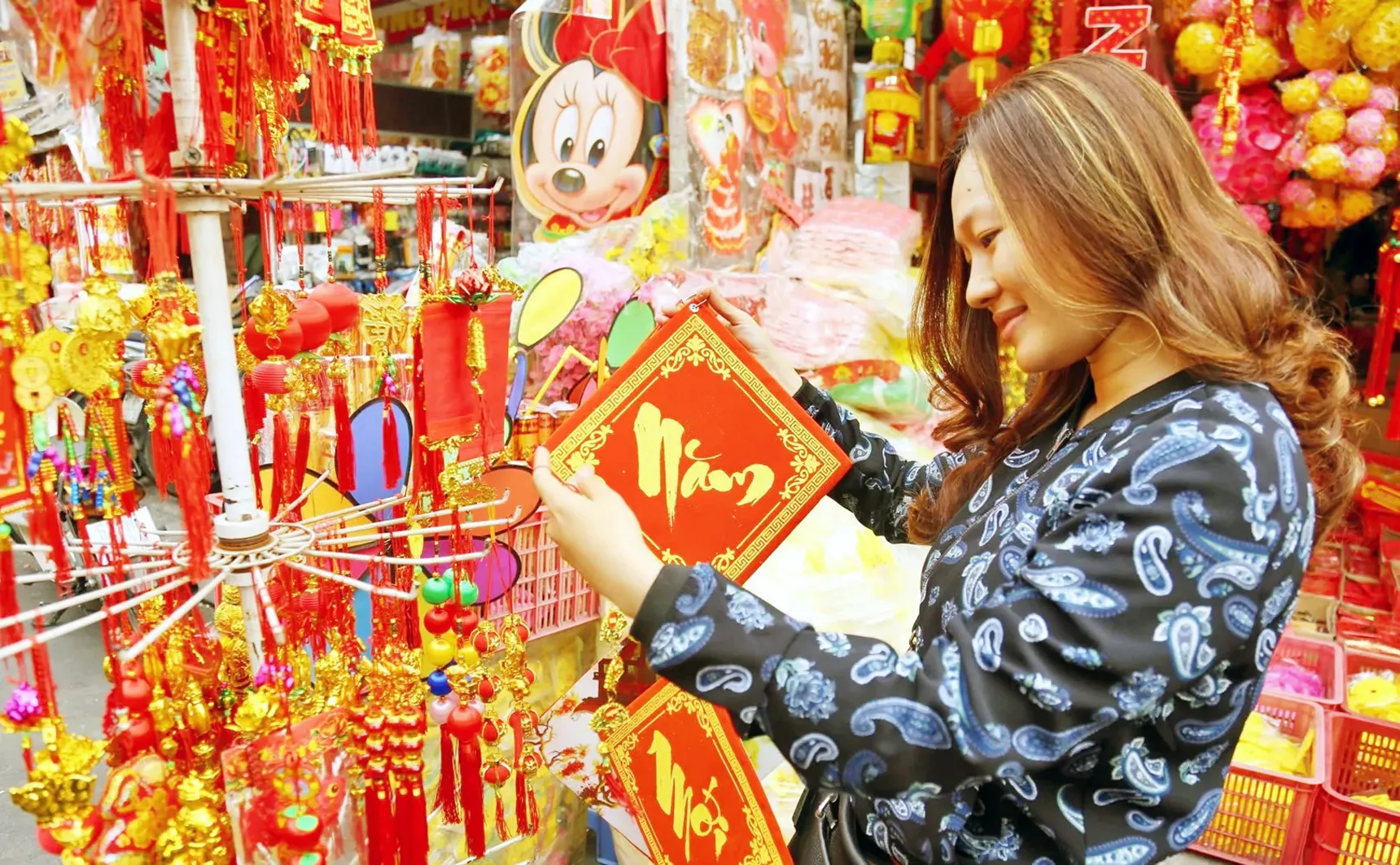 Người tiêu dùng mua đồ trang trí Tết. Ảnh: Hoài Nam
