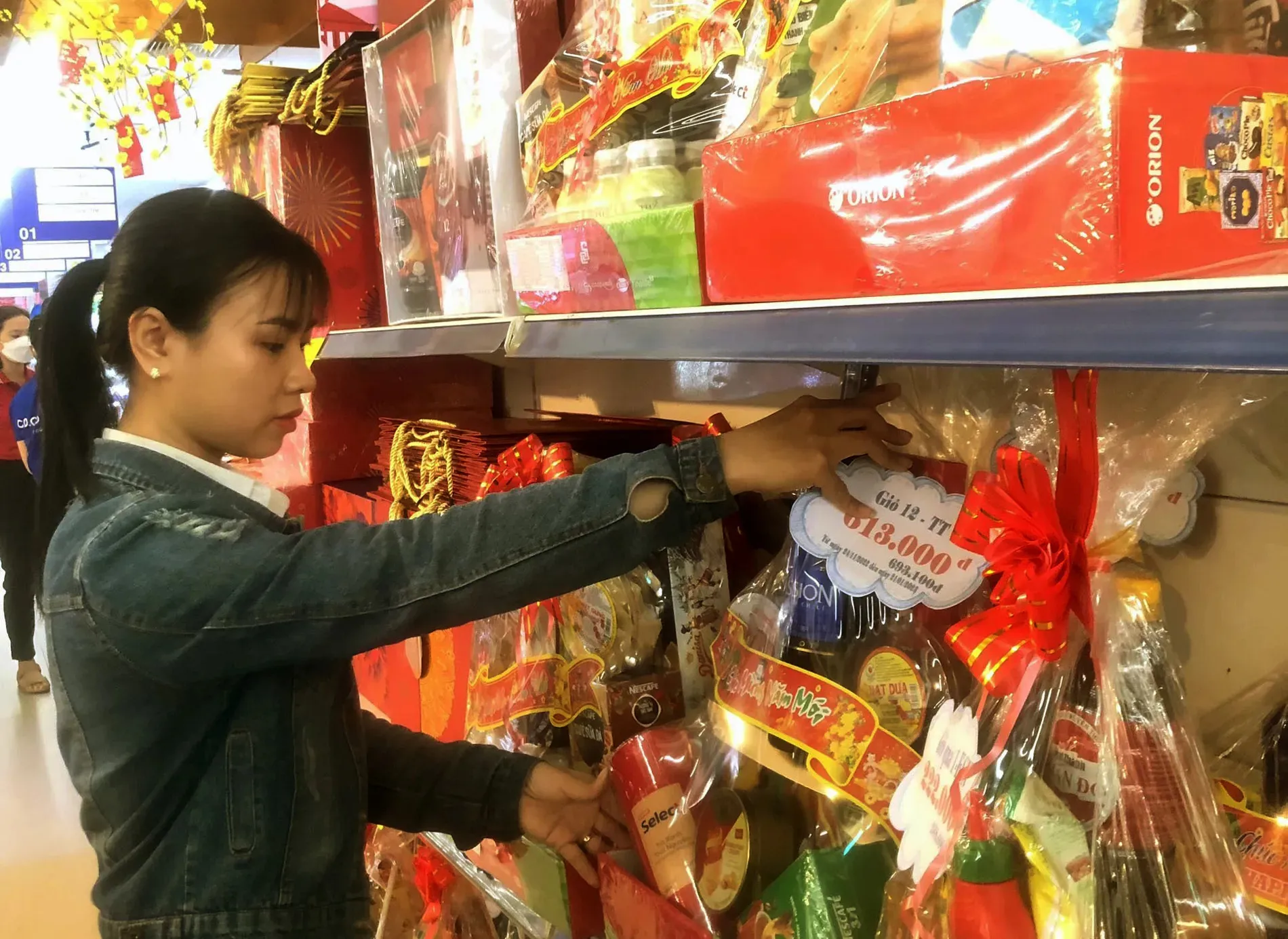 Người tiêu dùng mua giỏ quà Tết tại siêu thị. Ảnh: Hoài Nam