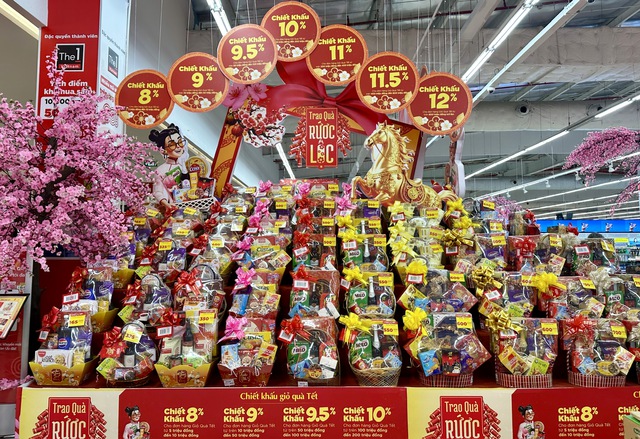 Tại các siêu thị lớn ở Hà Nội như GO! Thăng Long, AEON Mall Hà Đông và VinMart, thị trường giỏ quà Tết đã lên kệ từ sớm với đa dạng mẫu mã và mức giá, đáp ứng mọi nhu cầu của khách hàng.