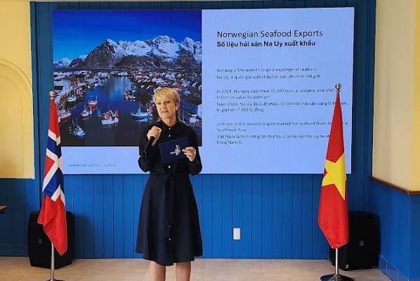 Bà Åshild Nakken - Giám đốc khu vực Đông Nam Á của Hội đồng Hải sản Na Uy (NSC) chia sẻ tại sự kiện.