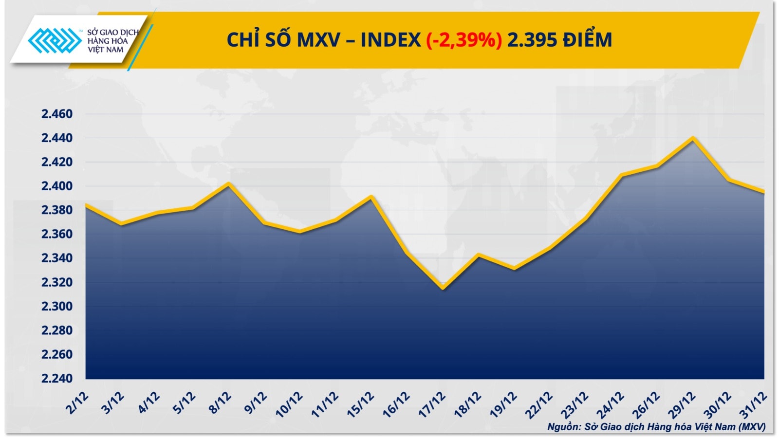 Trong phiên cuối năm, thị trường kim loại ghi nhận diễn biến tiêu cực khi 8/10 mặt hàng đồng loạt giảm giá. Đáng chú ý, giá bạch kim lao dốc gần 8,9%, xuống còn 2.034 USD/ounce, chấm dứt nhịp phục hồi ngắn hạn trước đó.