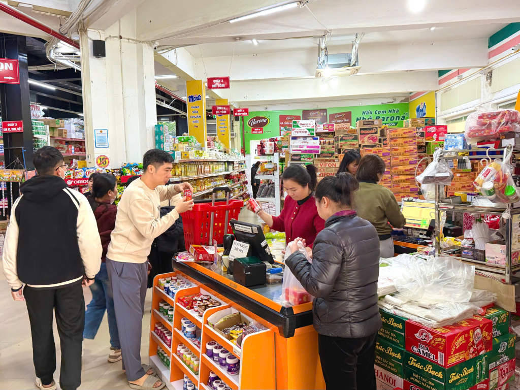 Chị Ma Thị Huế, nhân viên bán hàng tại Siêu thị Ngọc Xuân cho biết: Ngay từ trước Tết, đơn vị đã chủ động xây dựng kế hoạch dự trữ nguồn hàng, tăng sản lượng từ 10 - 20% so với các tháng bình thường nhằm bảo đảm nguồn cung dồi dào, tránh xảy ra tình trạng khan hiếm hoặc tăng giá đột biến. Sau kỳ nghỉ Tết, lượng hàng tồn vẫn còn khá lớn, vì vậy siêu thị đang đẩy mạnh các chương trình kích cầu như ưu đãi, tích điểm, giảm giá trực tiếp đối với nhiều mặt hàng thiết yếu.