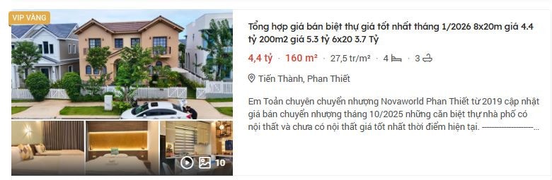 Dạo quanh các hội nhóm môi giới, thông tin chuyển nhượng tại NovaWorld Phan Thiết xuất hiện với tần suất dày đặc. Điểm chung của các tin rao này là ngôn ngữ "xả hàng", nhấn mạnh vào yếu tố giá bán và khả năng nhận nhà ngay. Một biệt thự song lập diện tích 8x20m trên trục đường 16m hiện được chào bán ở mức 4,1-4,4 tỷ đồng, bao gồm toàn bộ thuế phí. Đáng chú ý, phương án thanh toán thực tế chỉ khoảng 3,7-3,8 tỷ đồng, phần còn lại giữ lại chờ ra sổ.